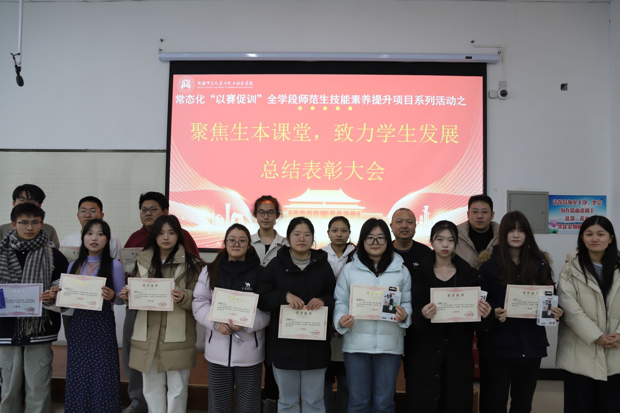 2025年12月3日,学院于二号教学楼举办全学段师范生能力素质提升活动成果展示及表彰大会,通过颁奖仪式、技能展示与经验分享,全面展现我院师范生培养成果。
