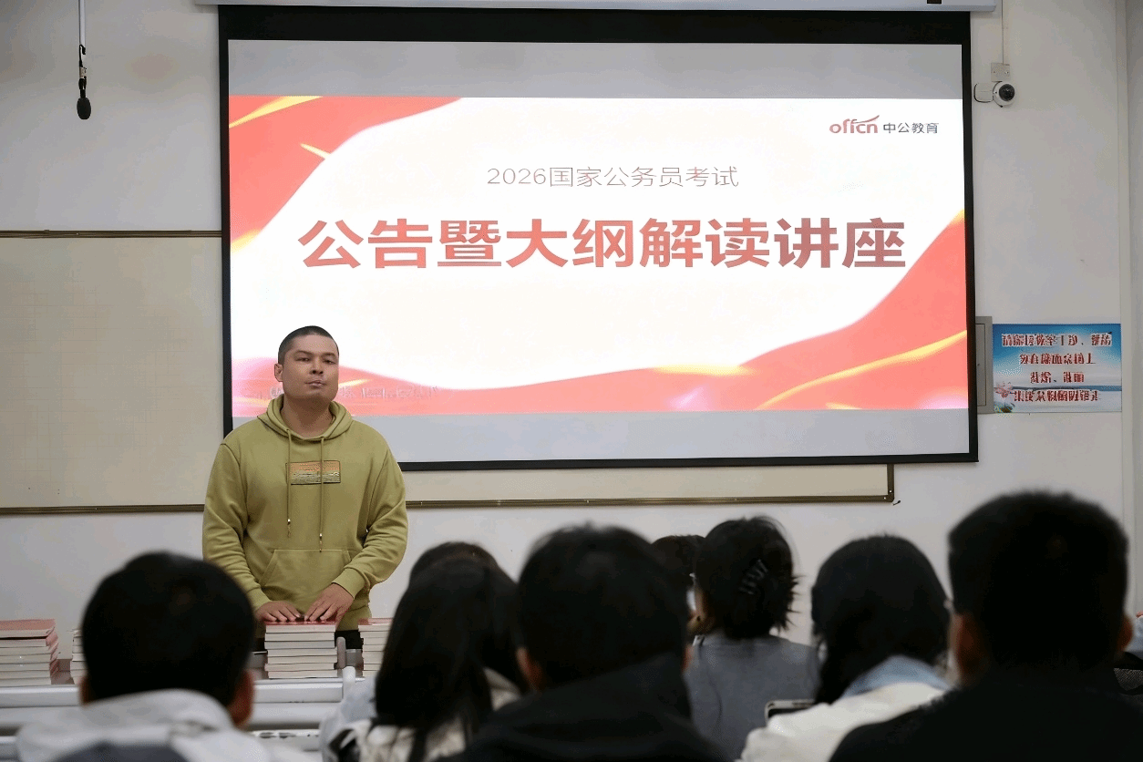 为助力历史与社会学院2026届学子备战国家公务员考试,学院于9月26日特邀中公教育机构举办“2026国考公告与大纲解读”专题讲座。活动旨在帮助学子精准把握考情,明确备考方向,提升应试竞争力,为其成功“上岸”奠定坚实基础。