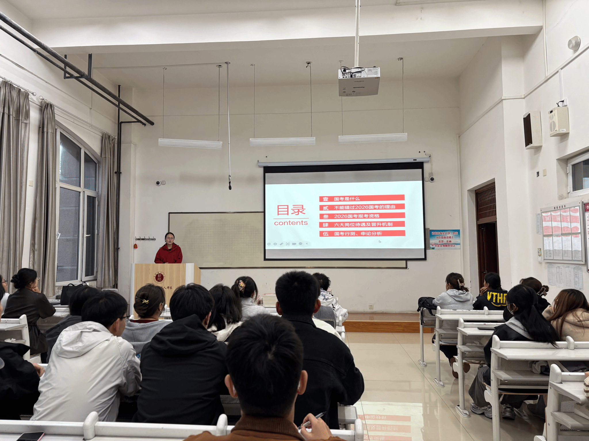 此次讲座为我院2026届同学系统梳理了国家公务员考试的相关政策与备考路径,提供了实用、有针对性的指导。衷心祝愿同学们科学备考、全力以赴,在2026年国考中取得优异成绩,早日实现公职梦想!