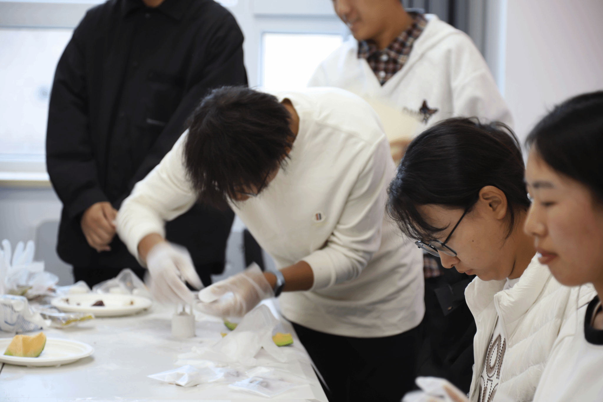 在专业教学视频引导下,师生共同投身月饼制作实践。从包馅、压模到脱模,每一步都凝聚着专注与期待。包馅时的小心翼翼,压模成型的期待,以及看到自己亲手制作带有美好寓意的月饼成功脱模时的欢呼,构成了活动现场最动人的画面,期间,欢声笑语不绝于耳,老师同学们相互交流心得,相互帮助,不仅学会了技能,更拉近了彼此的距离,整个教室弥漫着甜蜜的香气,洋溢着浓浓的节日氛围和同窗情谊。活动的最后,大家将自己亲手制作的月饼小心翼翼地装入密封袋中,准备带回去和室友亲人分享这份喜悦。
