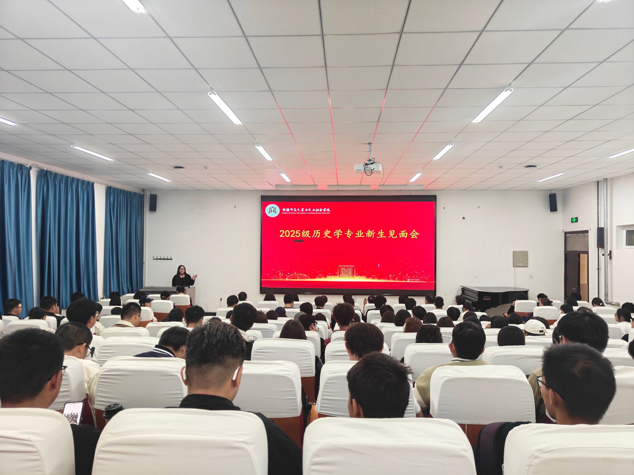 学院分别于9月24日、29日举行新生见面会。学院领导班子、系主任、专任教师、班主任、辅导员及2025级全体新生参加。学院党委书记白丽艳在致辞中欢迎新同学的加入,并从专业学习、时间管理、综合能力提升等方面提出期望,鼓励同学们合理规划大学生活,实现自我成长。