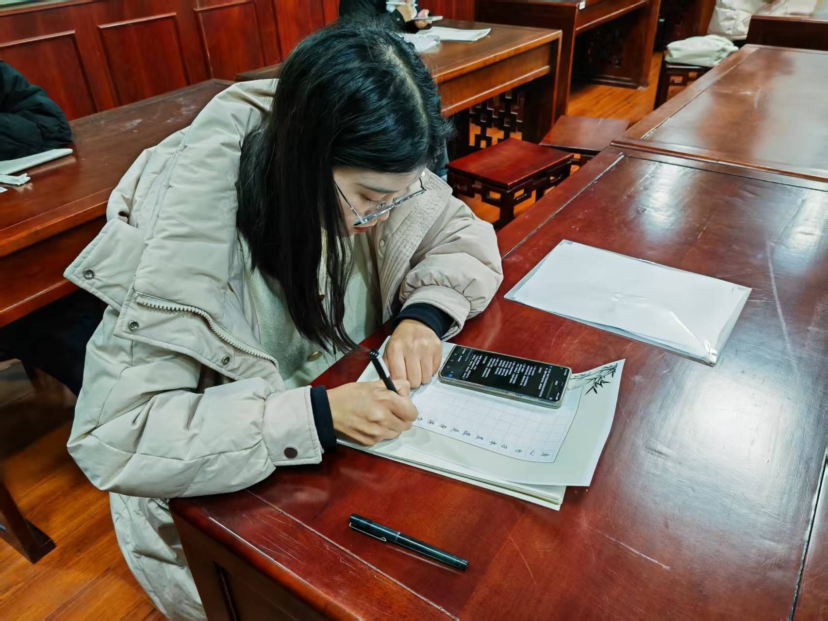 在协会成员的现场指导下,参与者围绕“廉”字展开系统学习,从执笔运笔到汉字结构,逐步掌握书写技巧,并在“先明廉、再练笔”的过程中,深化对廉洁内涵的理解。