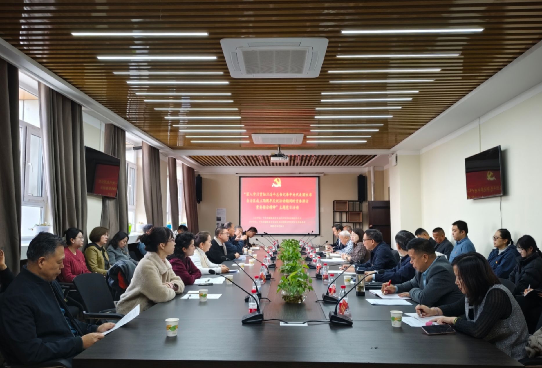 为全面落实习近平总书记率中央代表团出席新疆维吾尔自治区成立70周年庆祝活动期间的重要讲话和重要指示精神,10月24日,由中共新疆维吾尔自治区社科类社会组织委员会主办,中共新疆师范大学历史与社会学院委员会、中共新疆维吾尔自治区卫拉特蒙古研究学会支部委员会、中共自治区社科联机关第二支部委员会共同承办的主题党日活动在新疆师范大学和乌鲁木齐市文化中心展览馆举行。