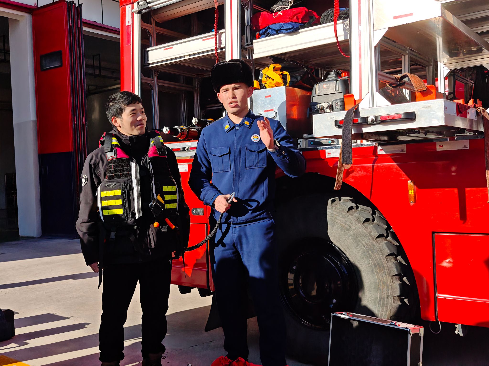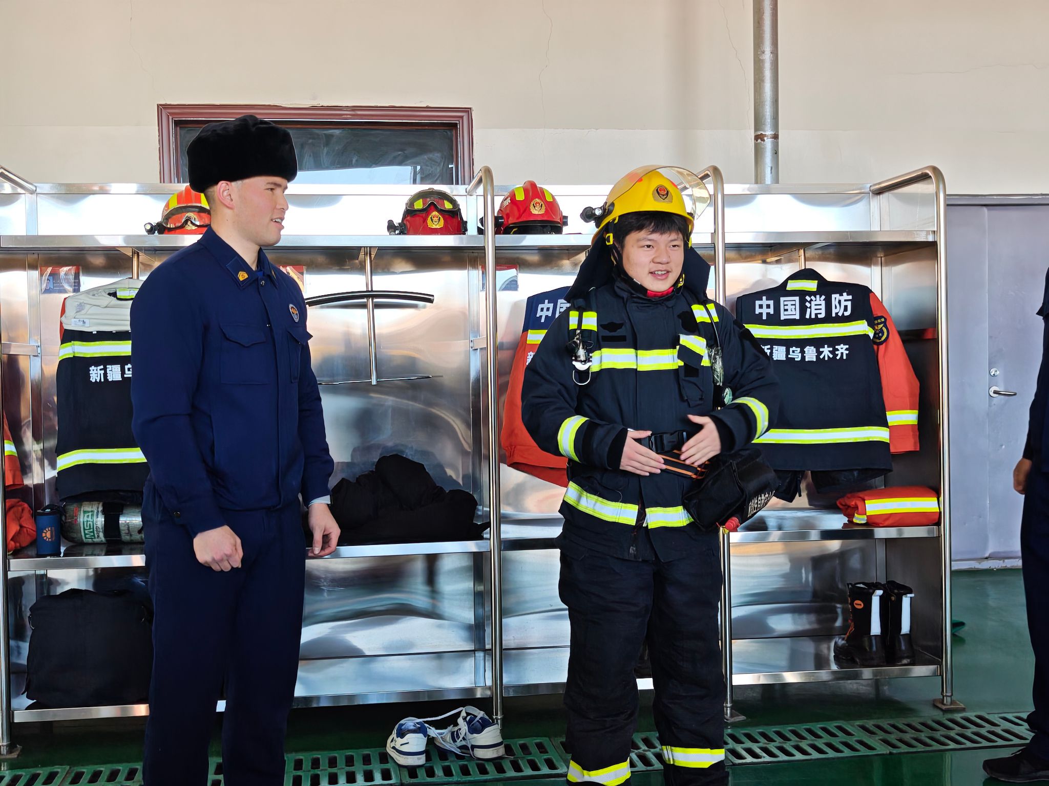 紧接着,全体党员观摩了消防员快速出警换装演示。在消防员的指导下,部分学生党员还尝试穿戴了消防服、头盔及空气呼吸器,深刻理解了“时间就是生命”的救援理念。
