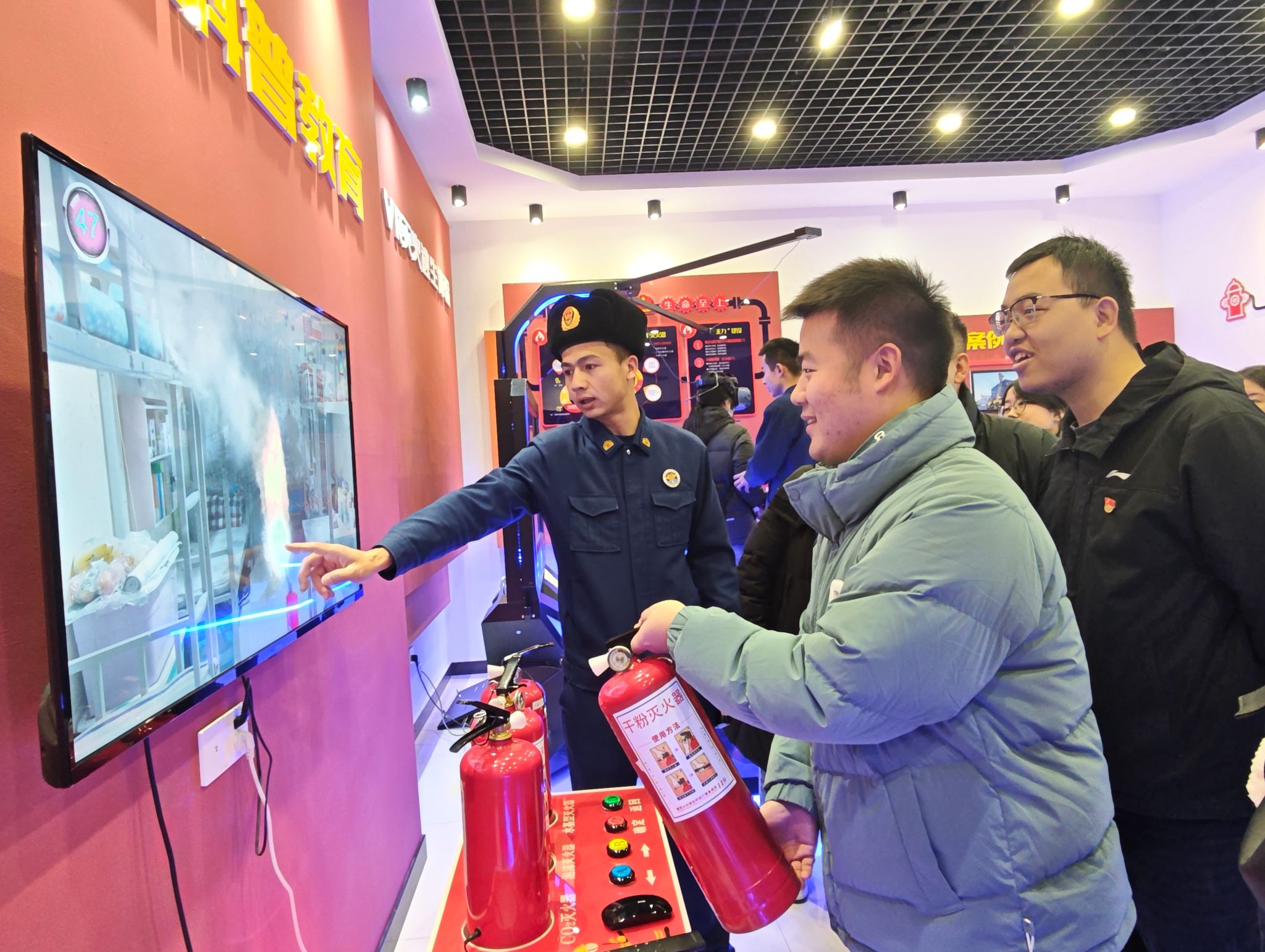 随后,在指导员的引导下,全体党员深入消防站的生活与训练区域参观。从整洁如“豆腐块”的宿舍到满载荣誉的陈列室,大家深刻感受到了纪律部队的严谨作风。在VR体验室,党员们通过虚拟现实技术模拟灭火过程,学习掌握了必要的灭火技能。